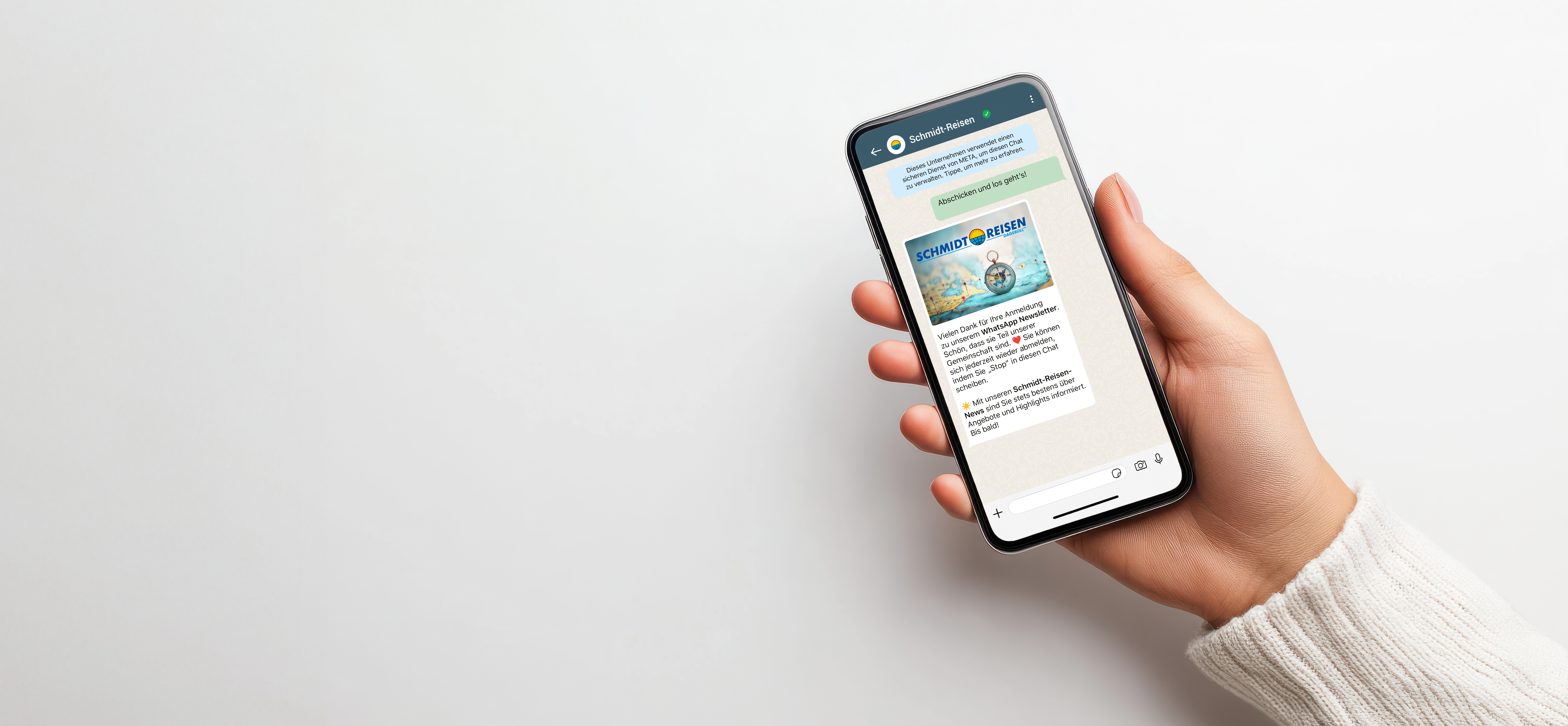 Sie erhalten nur wichtige Informationen als Nachrichten. Beispielsweise wenn unser neuer Katalog erscheint oder bei exklusiven Reisetipps. Außerdem informieren wir Sie über Informationsveranstaltungen oder kurzfristige Sonderangebote. Dies entspricht circa ein bis drei Nachrichten im Monat.